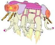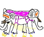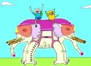 The Ancient Psychic Tandem War Elephant was both Finn & Jake's secret wish only two bros can share. The Ancient Psychic Tandem War Elephant has psychic powers, as the power is said in the name, and known to grant wishes for whoever can tame the Elephant. The Ancient Psychic Tandem War Elephant appears to have weapons that shoot lasers. The weapons are were the tusks should be.
