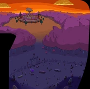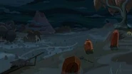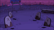 Candy Cemetery is a place located outside the Candy Kingdom. It was first introduced in the episode "Slumber Party Panic," where Princess Bubblegum made her experiments on the dead Candy People that laid at rest here. At first, she was forming her Decorpsinator Serum here and testing it on the dead Candy People, which lead the Candy People turning into zombies lusting for sugar. Some of the zombies tried to attack Princess Bubblegum, but Finn protected her and then they left the cemetery. Later, Starchy came into the area not knowing of the zombies, he was there to deliever a shovel to PB, but before he knew it, a zombie had risen from the ground. This frightened Starchy, which lead to his death. After the episode, it is unknown if the Candy People still use the cemetery, due to the fact PB's Decorpsinator Serum had revived all the dead Candy People that laid to rest there.