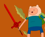 The Demon Blood Sword first appeared in the episode "Dad's Dungeon." It is also called The "Blood Sword," The "Demon Sword," and also "Jake's Family Sword." Joshua created it to be given to Finn, so he placed it in a dungeon so he could claim it. Apparently, Joshua and the Blood Demon, from which he took the blood from to make the sword, go "way back." But Joshua won't give the sword back, and sets the Blood Demon on fire by saying "Kee Oth Rama Pancake!" Whenever he appears. It is Finn's new primary weapon, appearing in most of the new episodes. Then, in the episode Play Date, Finn broke the sword in half to release Jake by the hands of Kee-Oth.