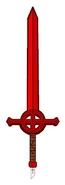 The demon sword is blood red, probably because it is made out of demon blood. It has a circle with a cross through it, separating the hilt and the blade. In the game Fight-O-Sphere, the sword is yellow. It is unknown if this was purposely done, or a mistake.