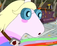 Ethel Rainicorn is Lady Rainicorn's mother. She appears in the episode "Her Parents," when Jake meets Ethel and Bob Rainicorn for the first time. To make a good first impression, Jake pretends to be a rainicorn to earn their acceptance. Ethel and Bob, along with other Rainicorns, love to eat human flesh. She, like her husband Bob, likes to play Cameladapuamawamapp.