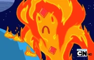 Flame Queen - In the episode "Earth & Water" Flame Princess was wearing a metal suit and her face looked like her dad's. She also had a titara on with her red gem in it instead of on her forehead.