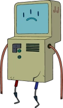 is one of the characters accused of being a tart thief in "The Other Tarts." His partners are Grimby and Taddle. He is a computer-like character, similar to BMO. Jake and Finn were the ones that accused him, with the others, of being a tart thief. He, unlike his partners, doesn't have a speaking part.