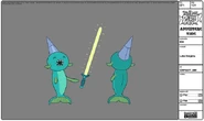 The Lake Knights look like fish from the bodies and have a giant horn that is a dull pink color on their heads. They have yellow lightsaber-like weapons and little arms to hold them with.