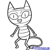 She is a small cat with big pink eyes, a long tail, and stripped-pattern fur that makes her appear like a mummy. She keeps a dagger in her mouth.