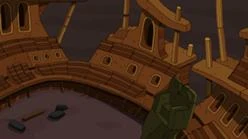 Finn and Jake then spotted a big arena and go there to see what it looks like in the inside. They find Fight King, who is sitting on his throne. He tells them to fight but they know its a trap so they go away.