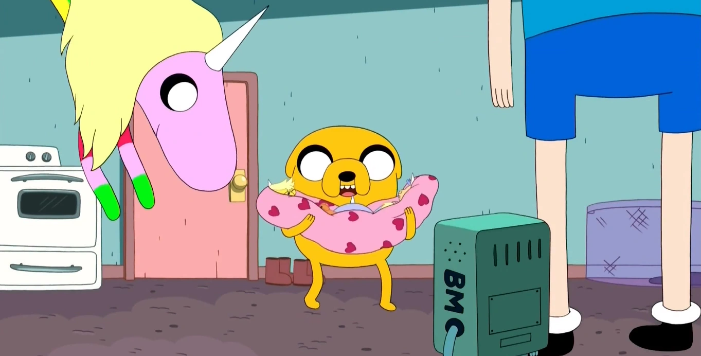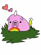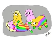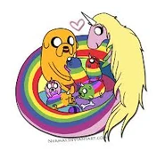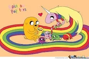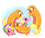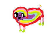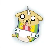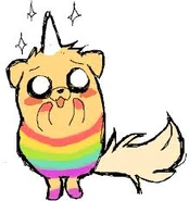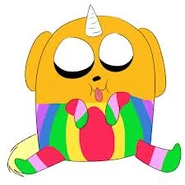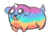 Rainbow Pupsters are Dog-Rainicorn hybrids. They are offsprings of Jake and Lady Rainicorn. Jake was surprised when he found out that he was going to have puppies. They were first shown on Princess Bubblegum's Heart Monitor, in the episode "Lady & Peebles." The 5 children are born in the episode "Jake The Dad."